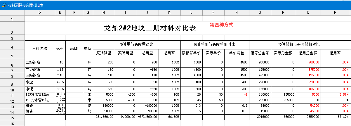 ③、超用金額=預算計劃量*采購控制價-實際用量*市場加權平均價