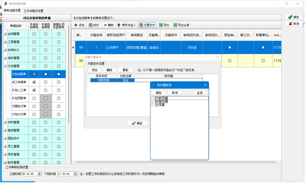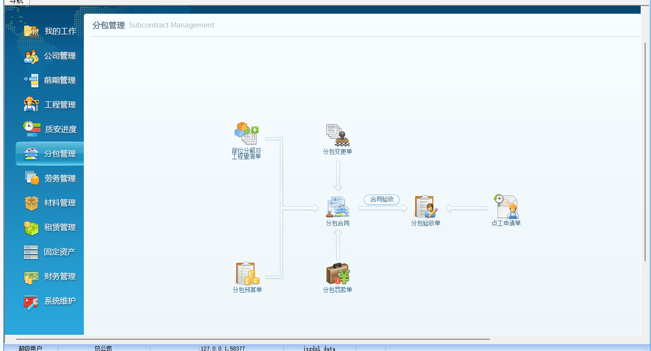 | 分包預算 | 勞務分包合同 | 點工申請 | 分包預算對比 | 分包罰款 | 分包變更 |
