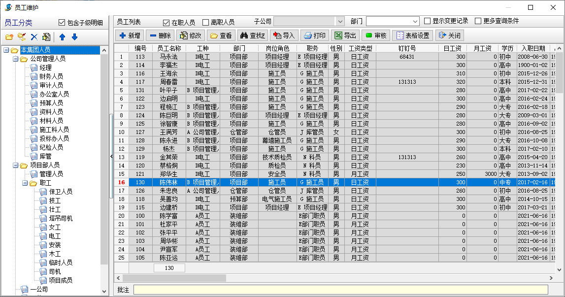 (2)員工分類。在左側可以對員工進行批量分類調整。