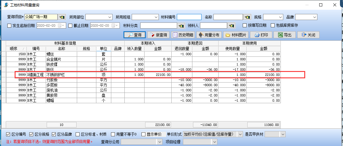項目上使用產成品時,需要從“生產車間”將產品調撥到項目上,做“材料調撥單”,填寫調撥單時,調出項目要選擇“生產車間”,出廠方式選擇“庫房調出”,并選擇對應的庫房,選擇對應的調入項目以及“領料班組”和“領料人”。如圖: