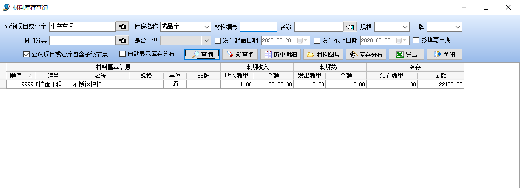 接下來在生產車間的“成品庫”中查到對應的生產成品的庫存,如圖: