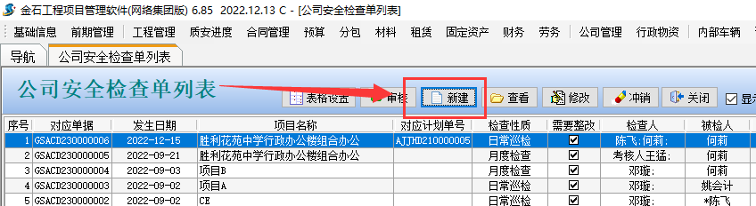 進入單據列表后新建公司【公司安全檢查單】(如下圖)